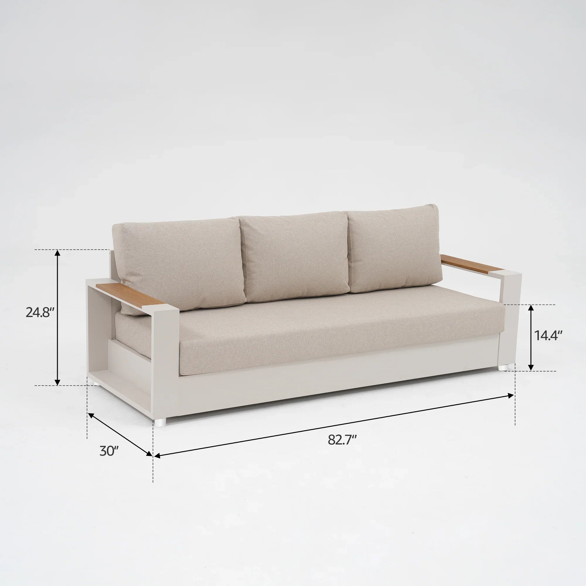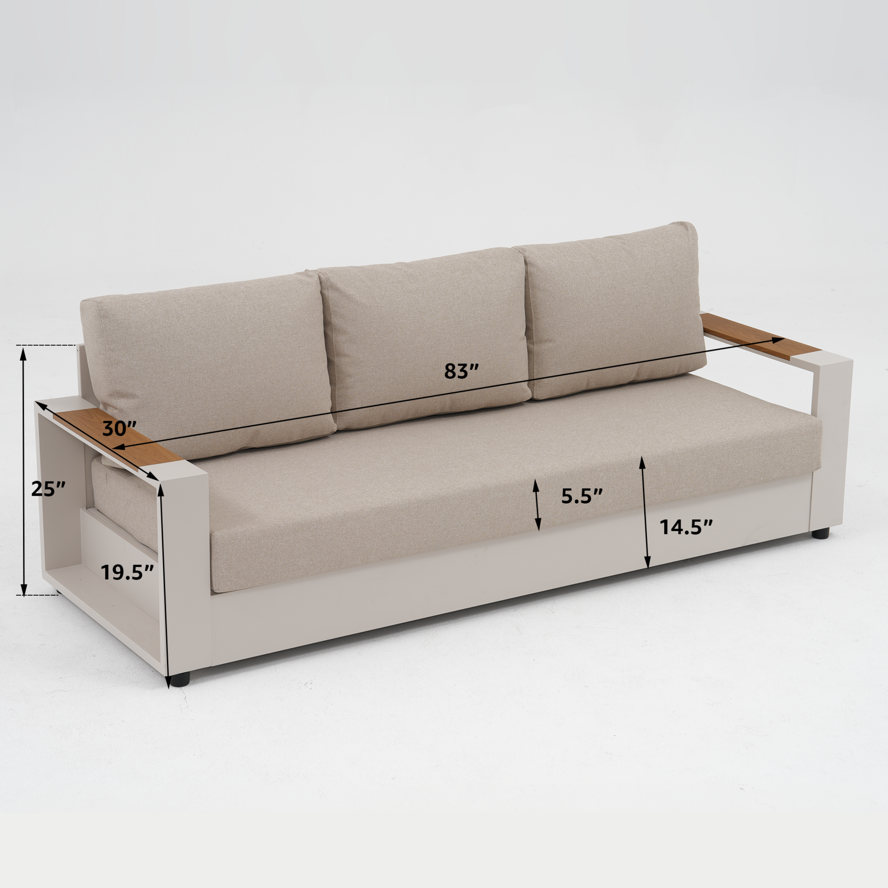 Addison Modern Metal Outdoor Sofa Set, Light Beige Aluminum Frame, Linen Olefin Cushion