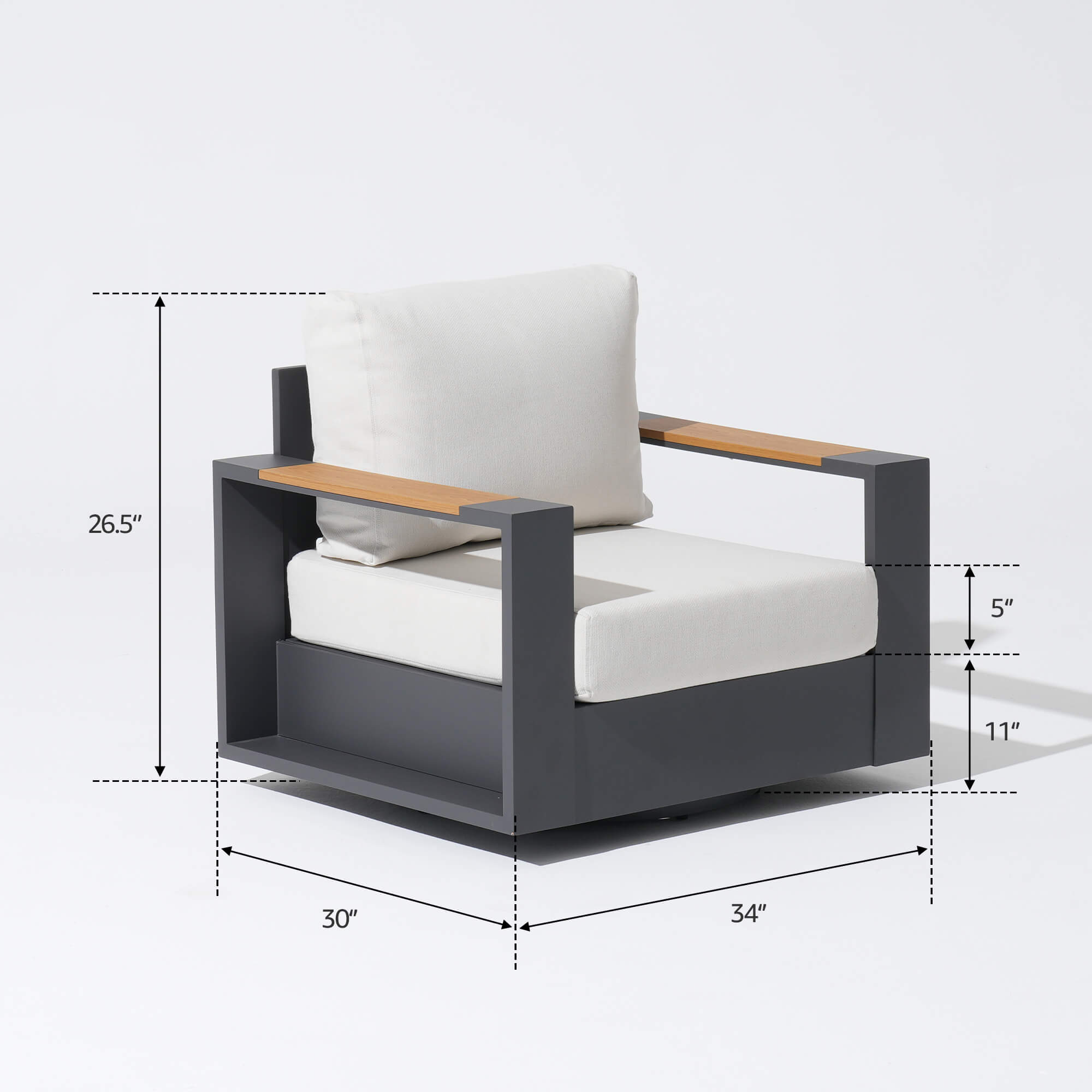Addison is more than furniture—it’s a feeling. Revel in the golden outdoors as the Addison modern Swivel Chair set transforms your space into a sanctuary of serenity—Sink into the 5-inch deep cushions—soft, supportive, and quick-drying—ready for lazy afternoons or late-night talks under the stars, with wide armrests that double as drink rests and hidden side storage for your favorite reads, Addison turns outdoor lounging into a truly seamless experience.
