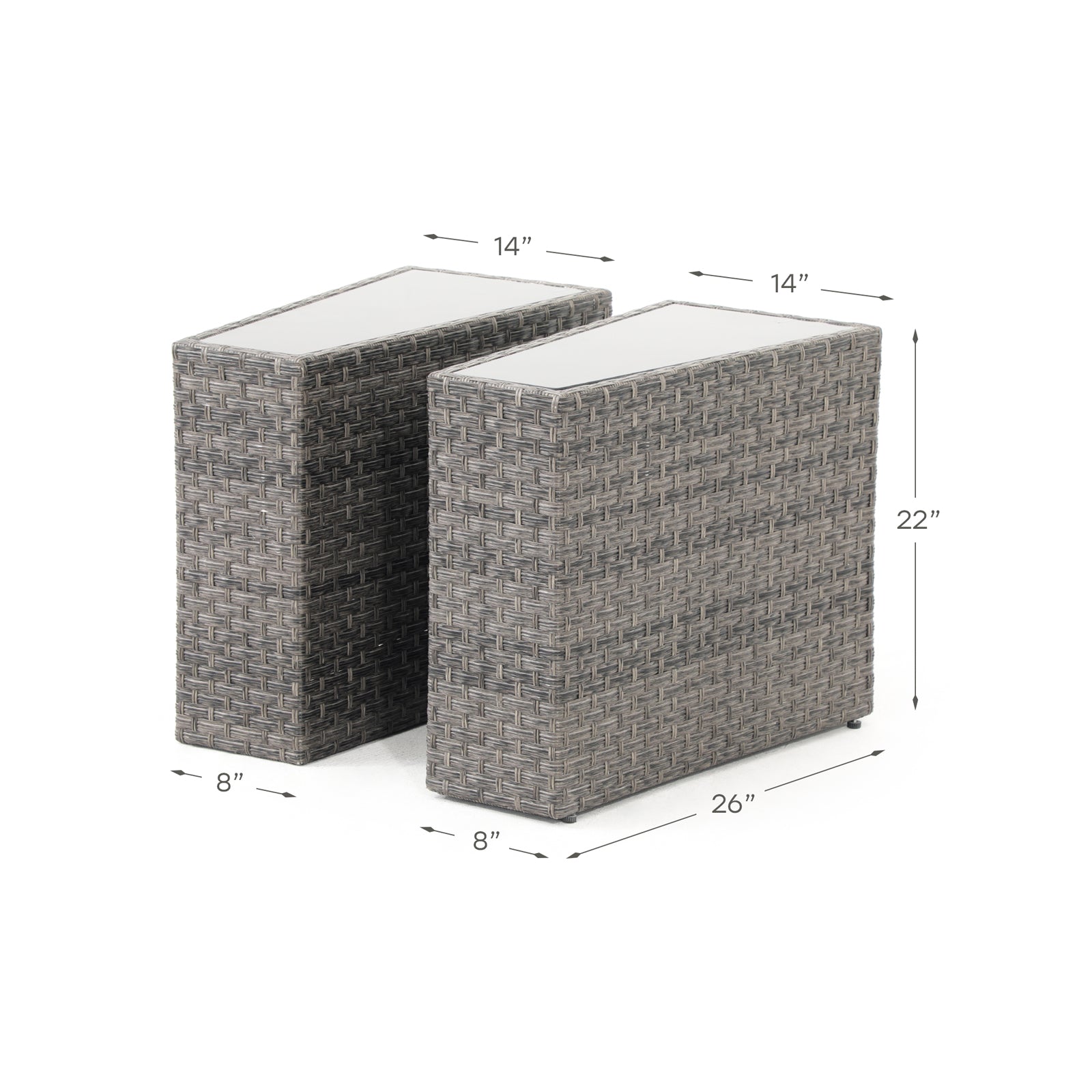 Make yourself at home in the Boboli outdoor sectional. Discover celestial-inspired lounging with the Boboli 9-piece curved sectional set, where the elegant half-moon design transforms your outdoor space into a sophisticated retreat. Featuring six plush seats with handwoven wicker frames and airy cushions, two functional side tables, and a sleek round glass-top coffee table, this versatile collection invites you to create endless configurations while relaxing beneath the stars in perfect comfort and style.