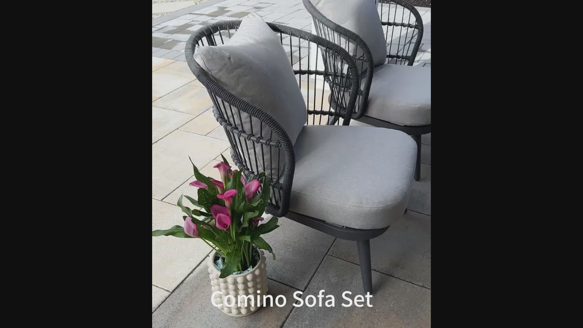 Love the shell design, but also crave industrial?? The Comino 2-piece Loveseat Set caters to both styles, with a effortlessly designed combo of cushy and sleek. Start with a sturdy black frame wrapped in tightly woven rope, add super comfortable cushions, and an oval table that invites drinks, snacks and good conversation, and the Comino is outdoor furniture, perfected.