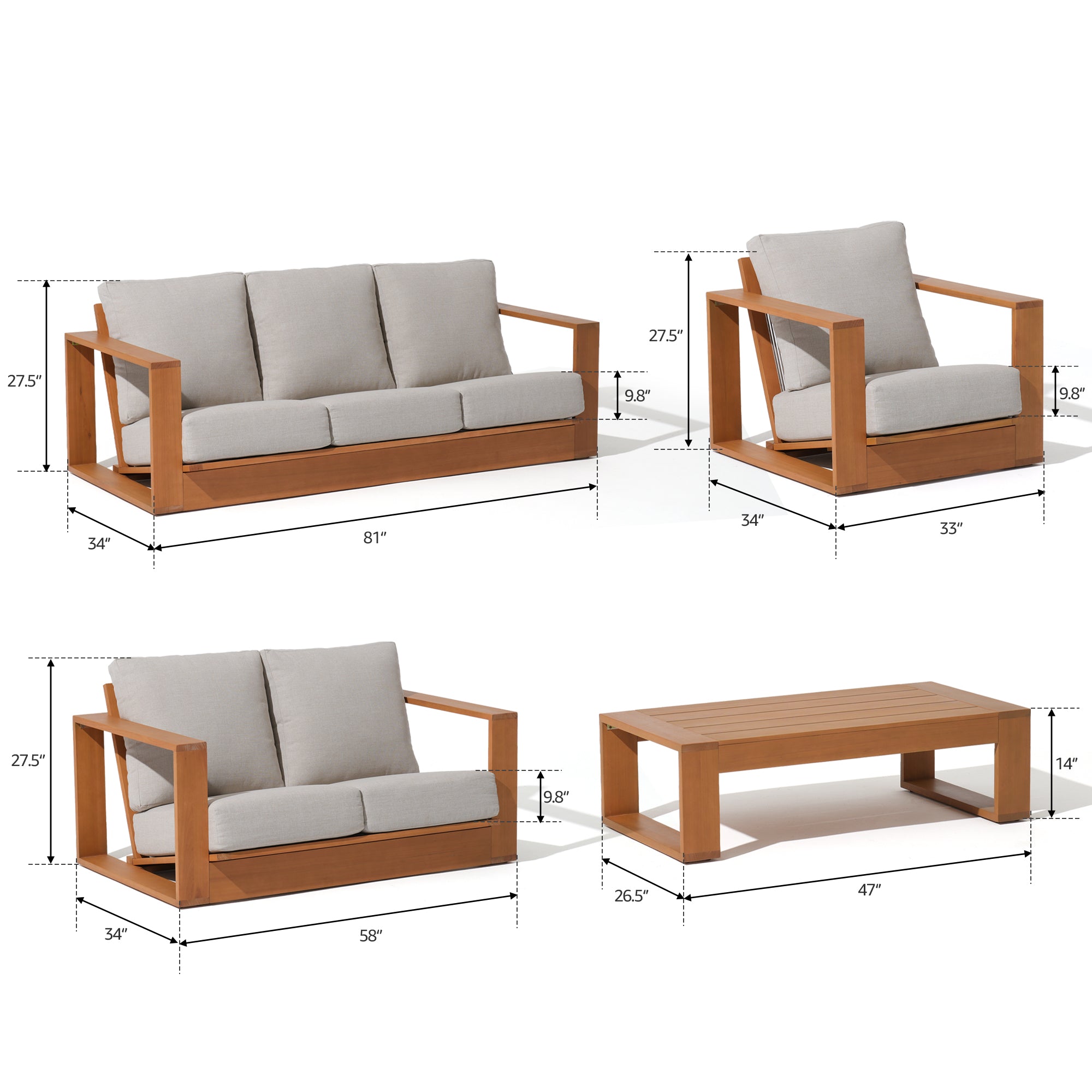 Where comfort flows and style settles in-The Drift 5-Piece Outdoor Furniture Set invites a gentle rhythm of relaxation into your outdoor space. With its clean lines, warm tones, and grounded design, it creates a setting where conversations linger and time slows down. Boldly classic, quietly refined — Drift makes the outdoors feel confidently composed.