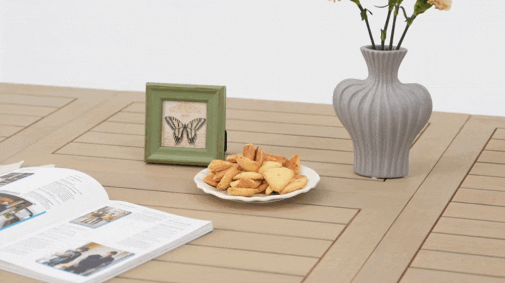 Crafted from sustainably sourced eucalyptus wood, the extendable table reveals its natural warmth in every grain, expanding effortlessly as the moment calls for more. With a calm, minimalist presence, Drift adapts to slow afternoons and lingering dinners alike—where the table opens, the light softens, and time stretches naturally outdoors.