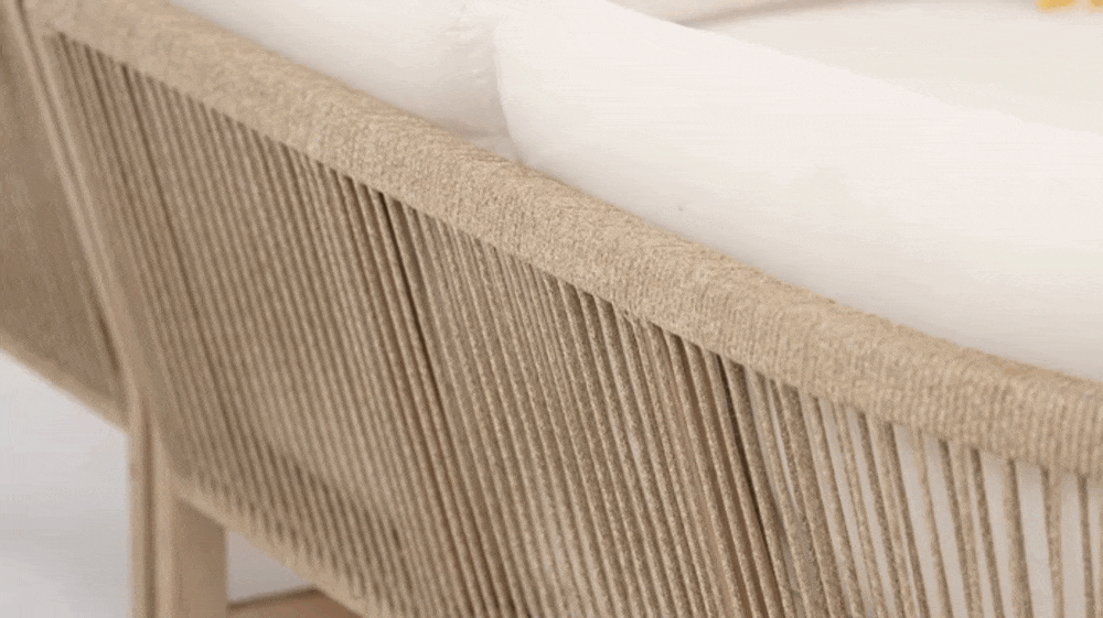Natural Wood Frame & Handwoven Rope Backrest