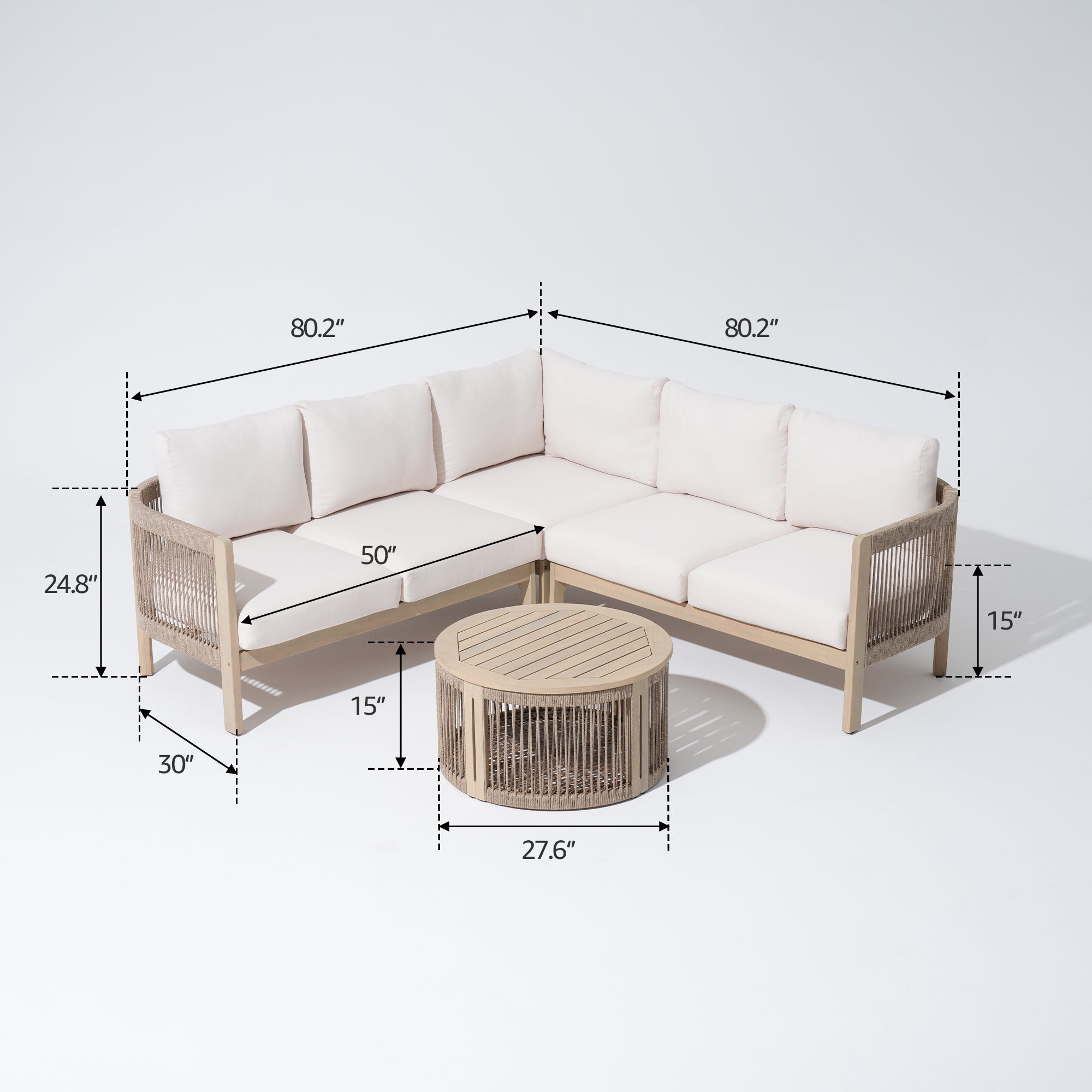 Foristern Wooden Outdoor L-Shaped Sectional Sofa Set with Hidden Storage Table, Handwoven Rope Design