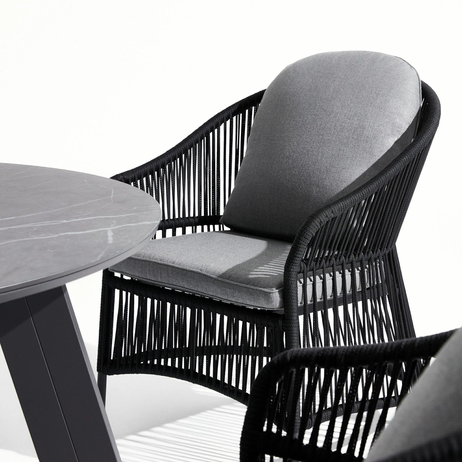 Black Frame, Black Rope, Grey Cushions