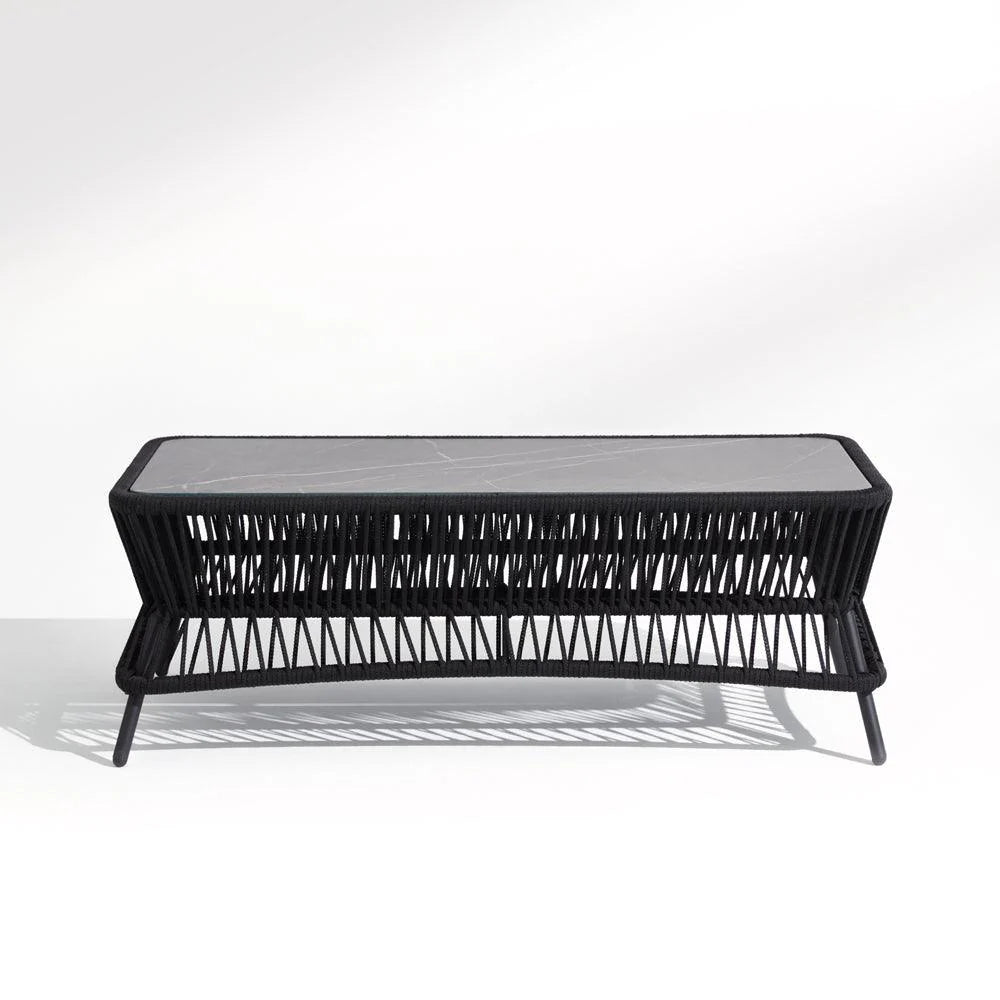 Wonder - Café au lai, anyone? The Midway Coffee Table makes even the smallest of gestures an absolute joy. An aluminum foundation with an intricate pattern of black rope accents brilliantly contrasts sintered stone. The Midway Coffee Table is a wondrous addition to the Presidio Sofa. There's no finer way to enjoy family, friends and life—outdoors and indoors—than with this luxurious patio table.