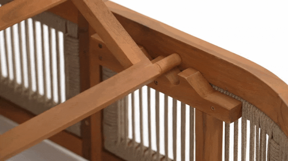 Crafted from 100% acacia wood, the Mori chaise lounge adjusts from upright to fully reclined, moving easily with your day. Handwoven rope details and soft cushions create a calm, grounded place to pause, stretch, and stay awhile.