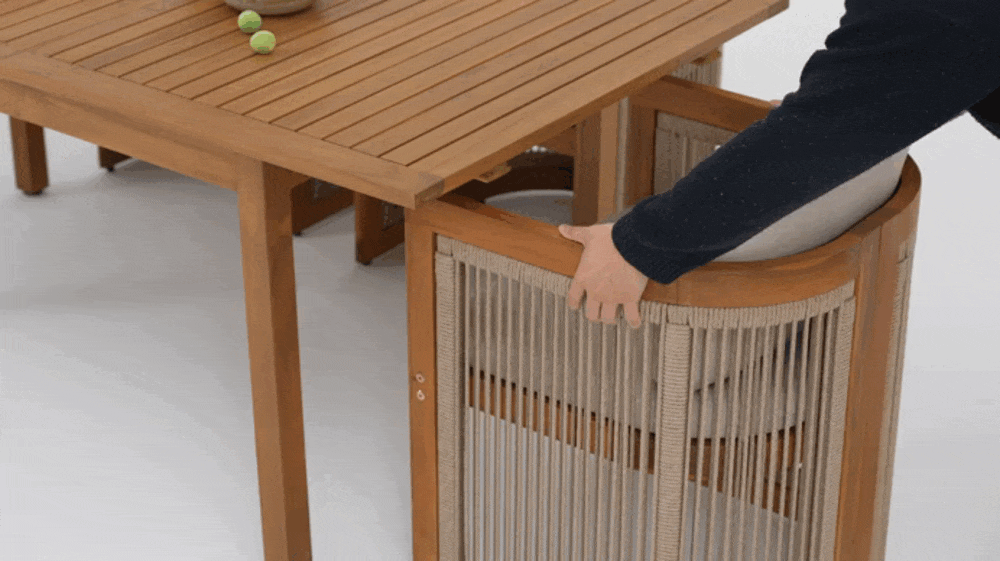 The Mori Collection blends modern clean lines with soft rope details, bringing a sense of calm and understated elegance to outdoor living. Crafted from warm acacia wood, each piece balances structure and comfort — handwoven rope panels and plush cushions soften the geometric frames. Perfect for patios or garden terraces, the collection includes both dining and lounge sets designed to work beautifully alone or paired together.