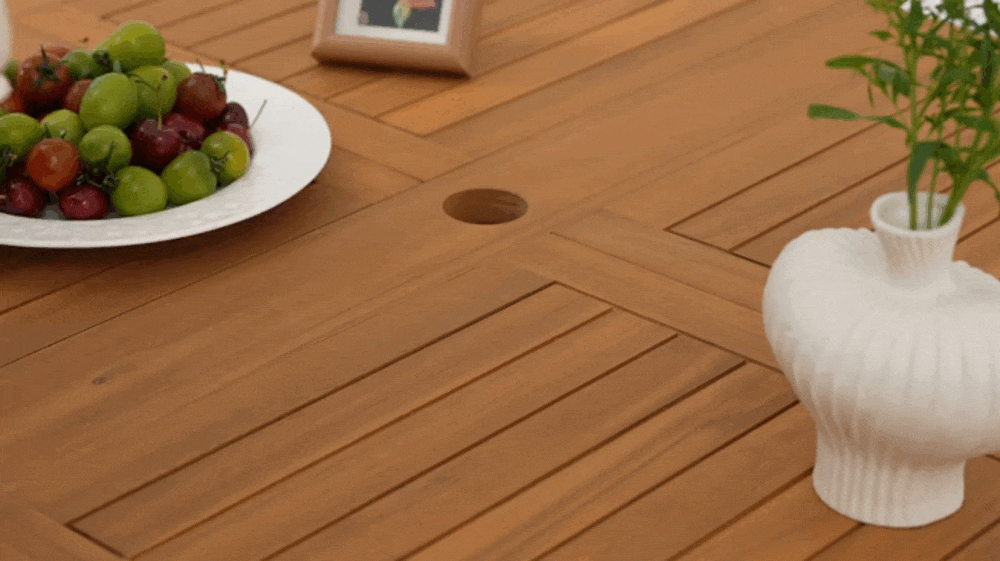 Nalia Outdoor Dining Set with Umbrella Hole, Woven textures & Extendable Table, 63''- 94''