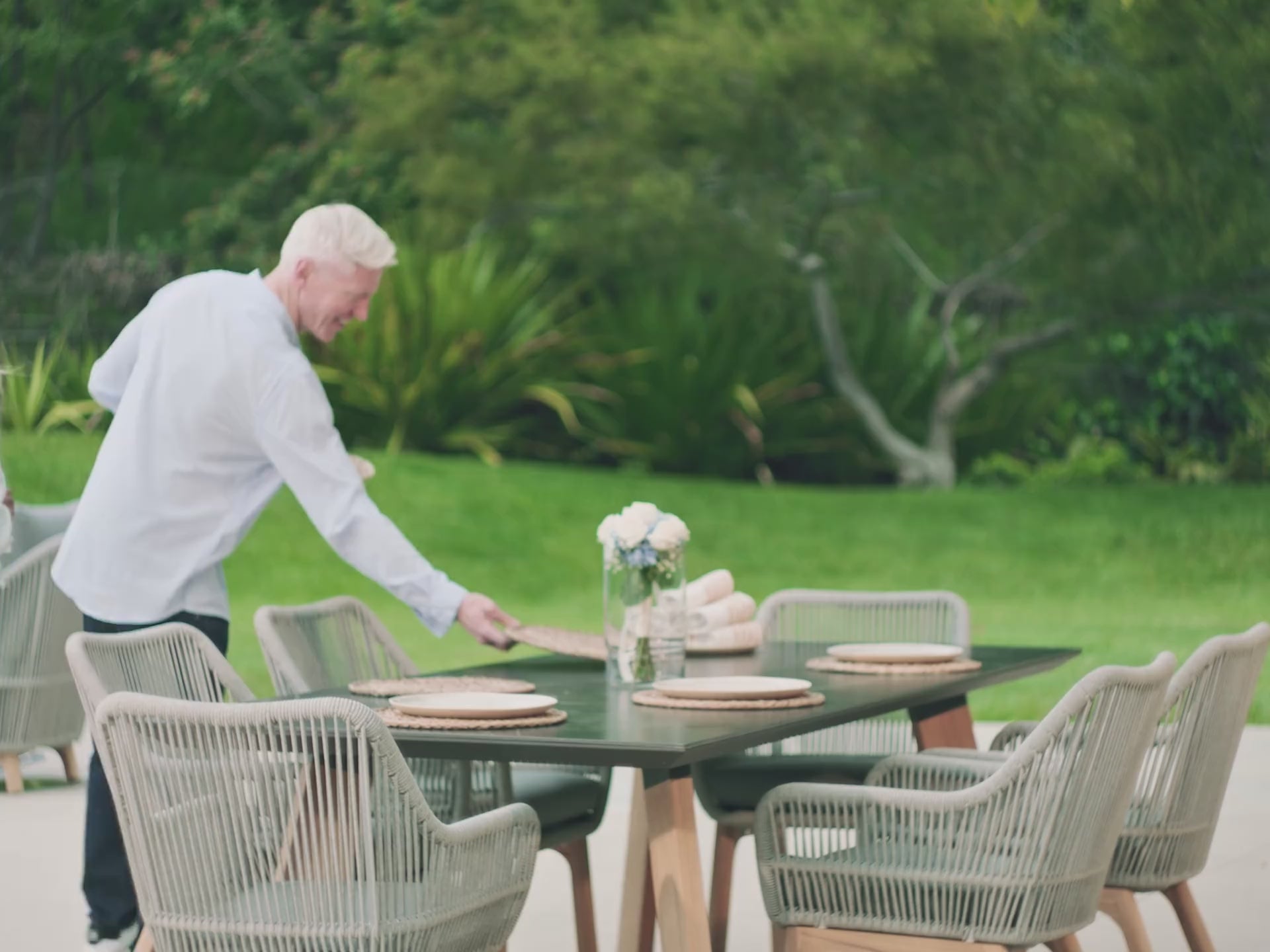 Plena Outdoor Dining Set For 6/8 People, Teak & Sintered Stone, 90.6''