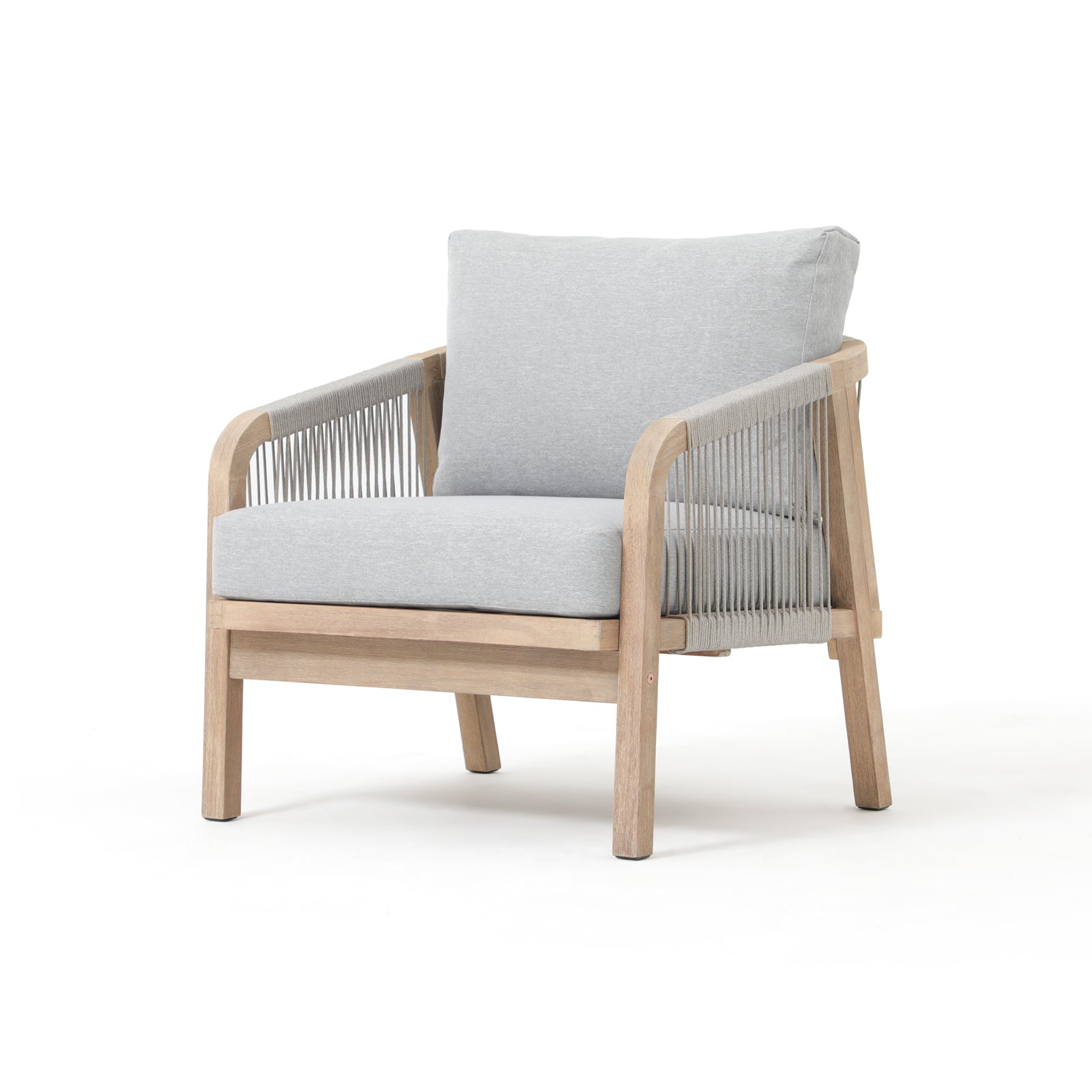 The 'Thalea' collection defines the essence of contemporary outdoor design. Designed for ultimate relaxation, the Thalea Lounge Chair combines a sturdy acacia wood frame with plush, generously padded cushions in light gray performance fabric. Its clean-lined silhouette and deep seating create a perfect balance of modern aesthetics and indulgent comfort, making it an elegant sanctuary for outdoor lounging.