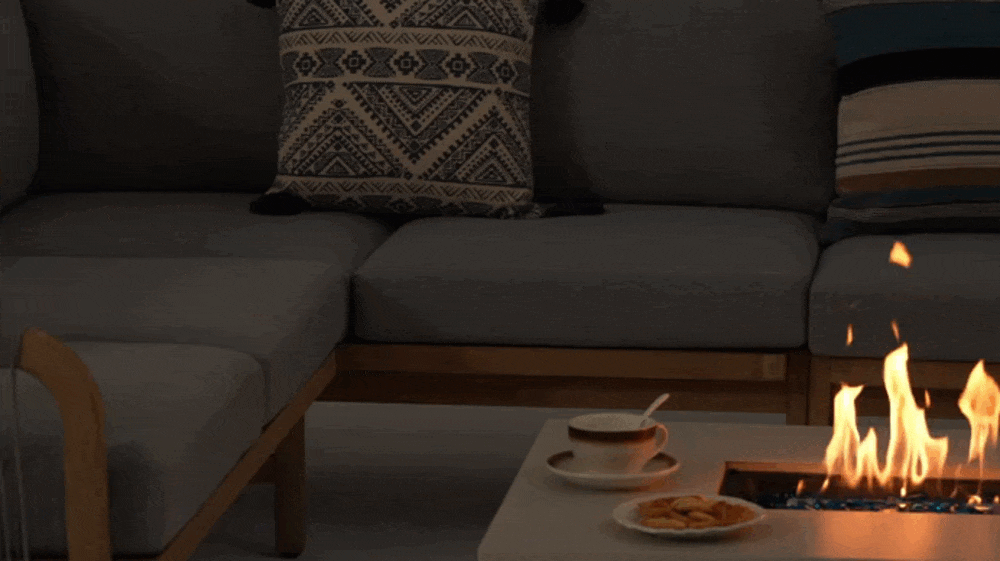 Thalea Wooden L-shaped Sectional Set with Fire Pit, Rope Design