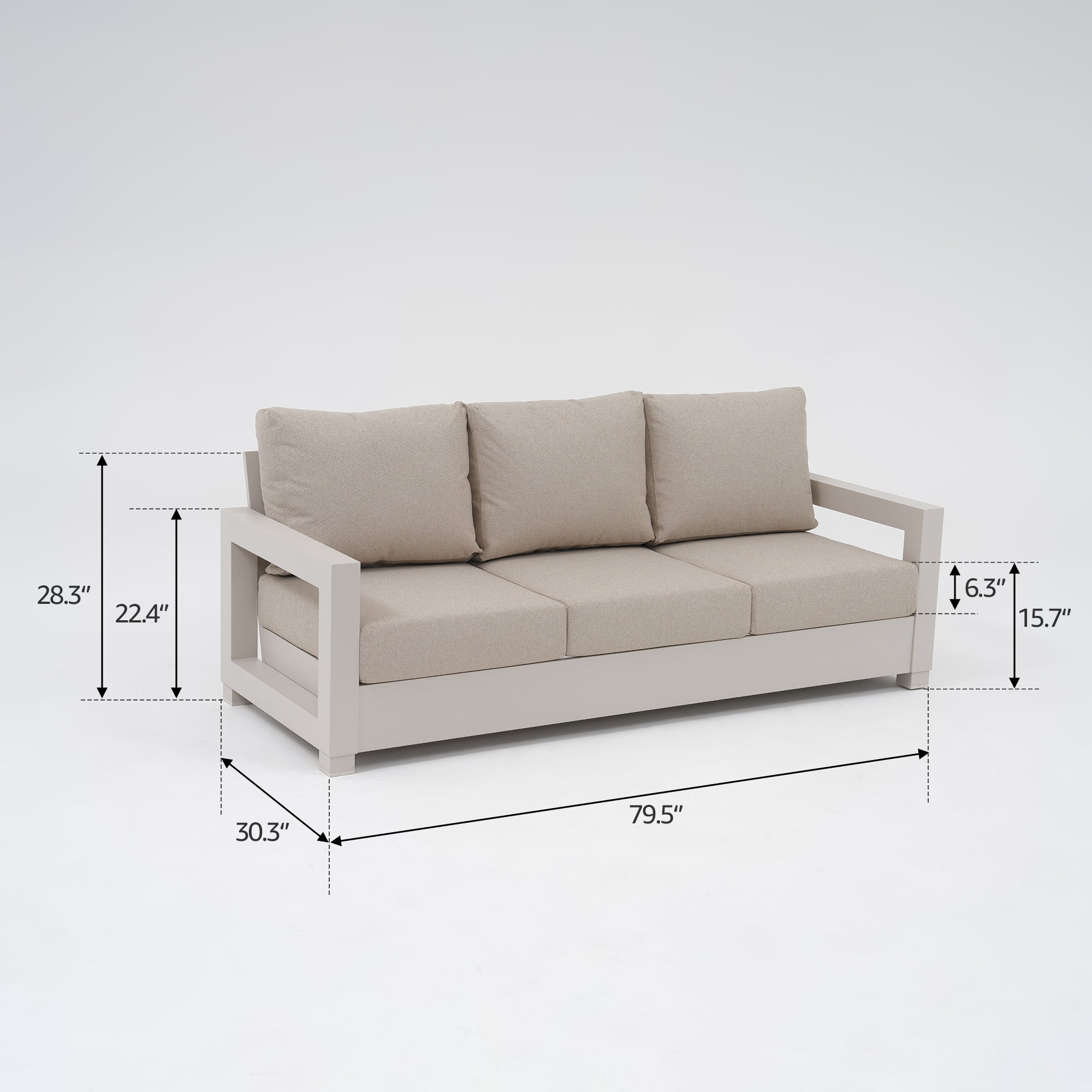 Vela Aluminum Light Beige Outdoor Sofa, Olefin Linen Cushions