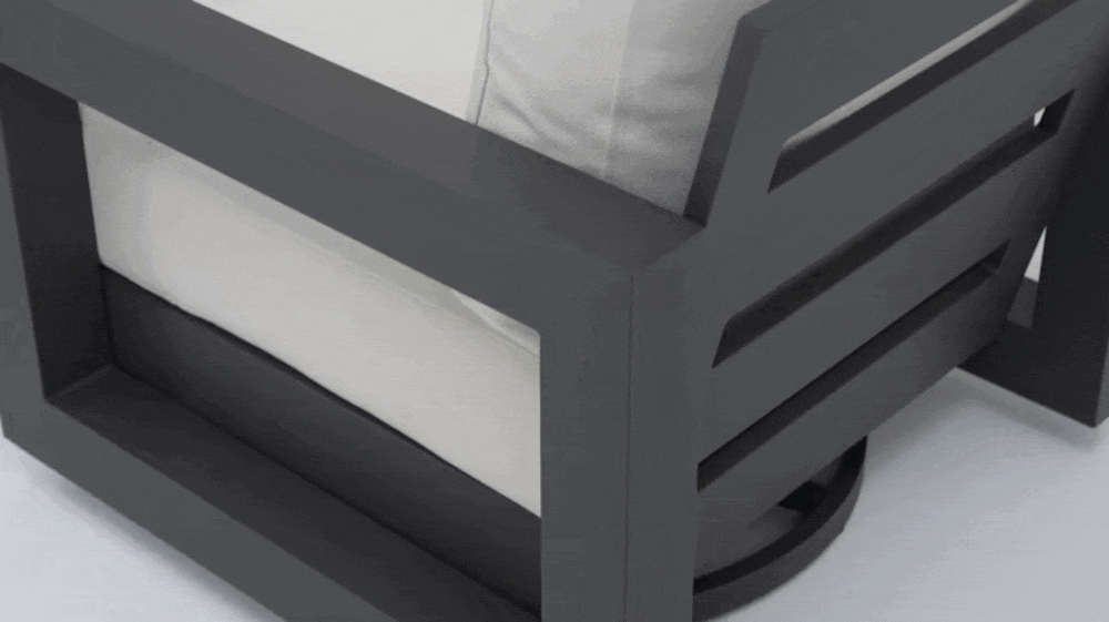 Swivel chairs follow the sun in slow, quiet turns, while a side table waits patiently for a glass, a book, a pause. Framed in soft, enduring aluminum tones, Vela settles into the outdoors with ease—where time stretches, shadows move, and comfort feels unspoken.