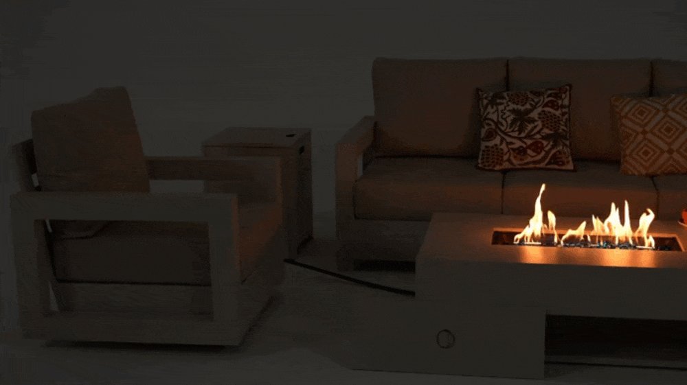 The Vela Collection centers around shared warmth. Swivel lounge chairs and sculpted seating invite easy conversation, while the aluminum frame provides lasting stability. Paired with a fire pit, Vela creates a relaxed outdoor setting—grounded, comfortable, and intentionally designed. Champagne and black-grey tones reflect the glow of the flame, turning open-air evenings into moments that naturally draw people closer.